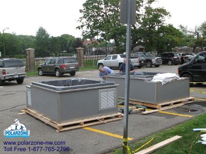 The first week of August, 2007 - Polarzone delivered, and set up, two Polarzone "Elite Hot" Spas and two "Pro Cryotherapy" Spas at Harvard University, for their training facility remodel and upgrade.